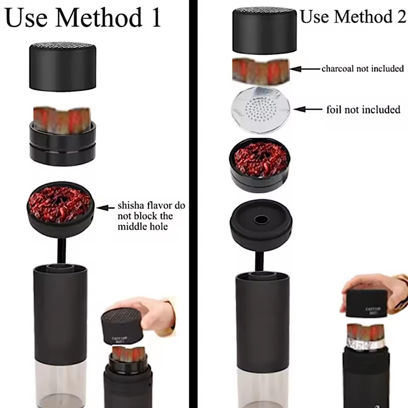 * *اقلام همراه:* مخزن آب، سری مخصوص تنباکو، شلنگ سیلیکونی باکیفیت و انبر.