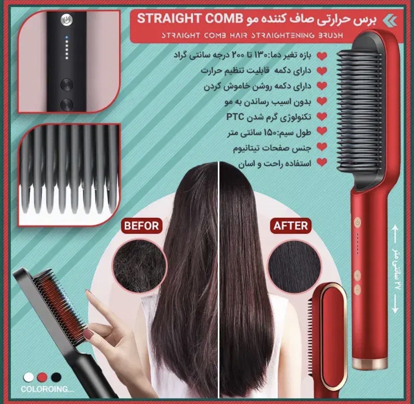 این برس حرارتی با طول سیم 1.5 متر آزادی عمل خوبی دارد و برای استفاده خانگی و حتی نیمهحرفهای کاملاً مناسب است.